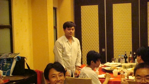 新會員先自我介紹 , 及發表來菲感想 , 此會員為 Tarlac City 建德學校王坤源校長 , 當天帶兩個兒子一起前來參加晚宴 .