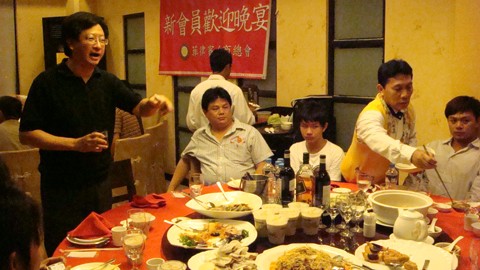 齊總會長跟新會員敬酒 , 表達熱誠歡迎之意, 也希望新會員多多參加商會活動, 交流商機, 溫故知新.